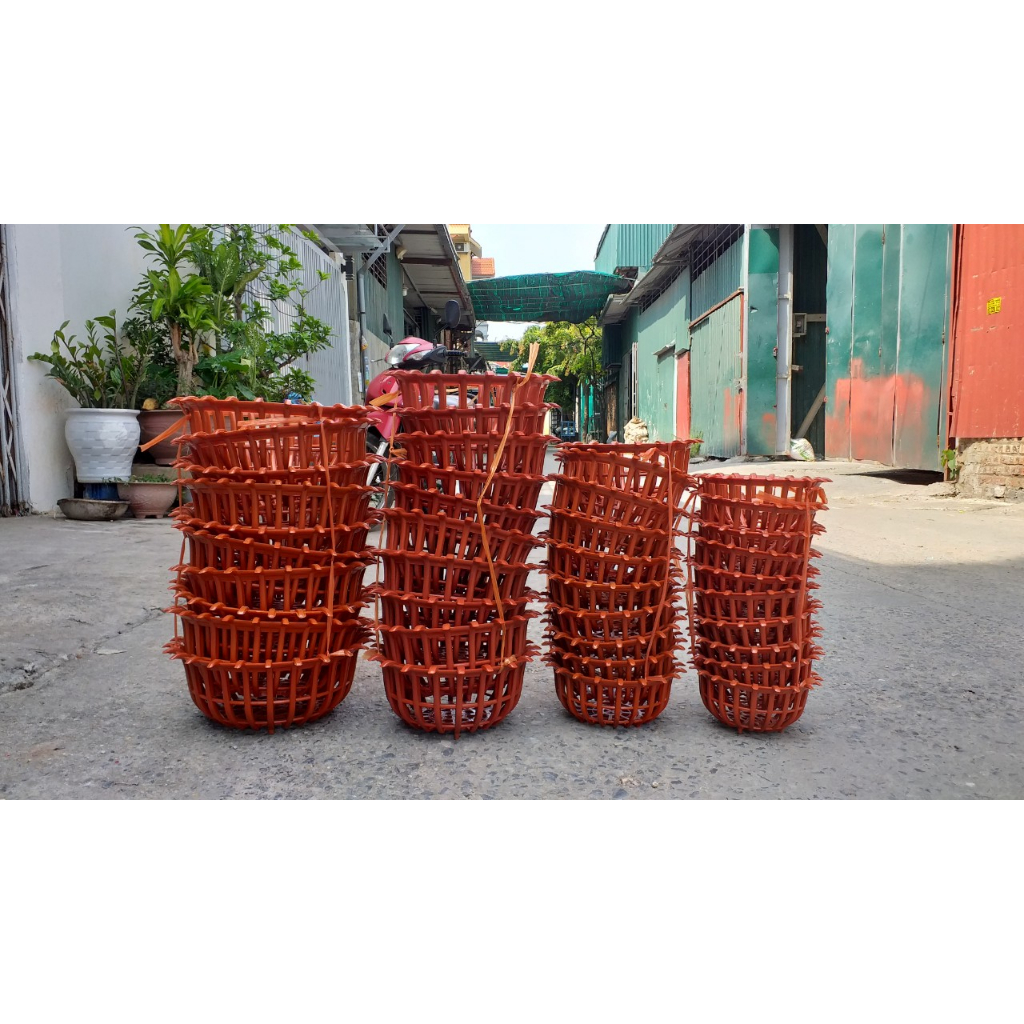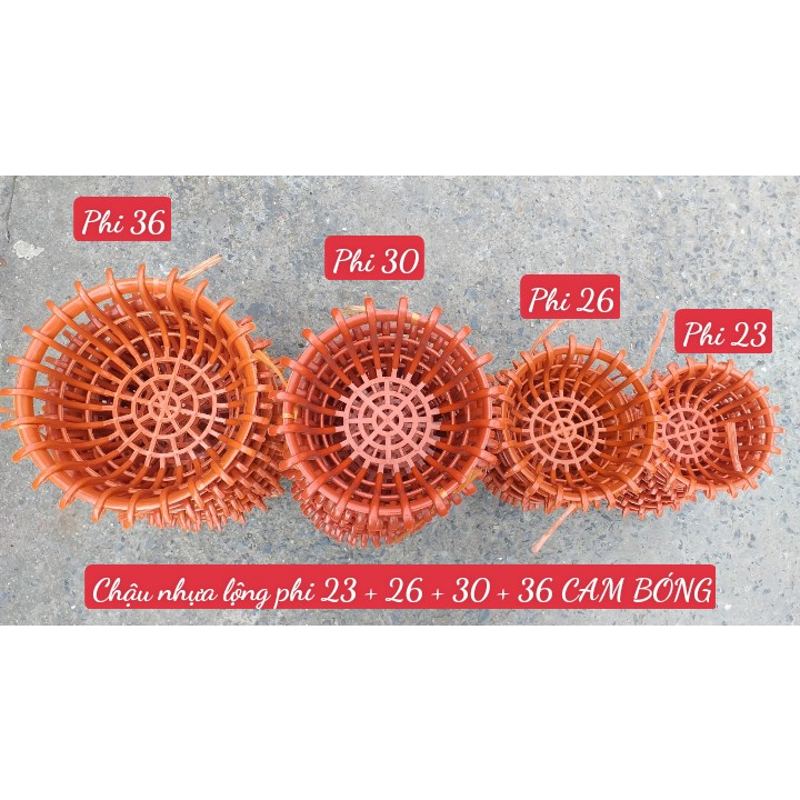 Chậu nhựa trồng lan dáng sen, dáng lộng màu cam bóng, đủ size (phi 23, 26, 30, 36)