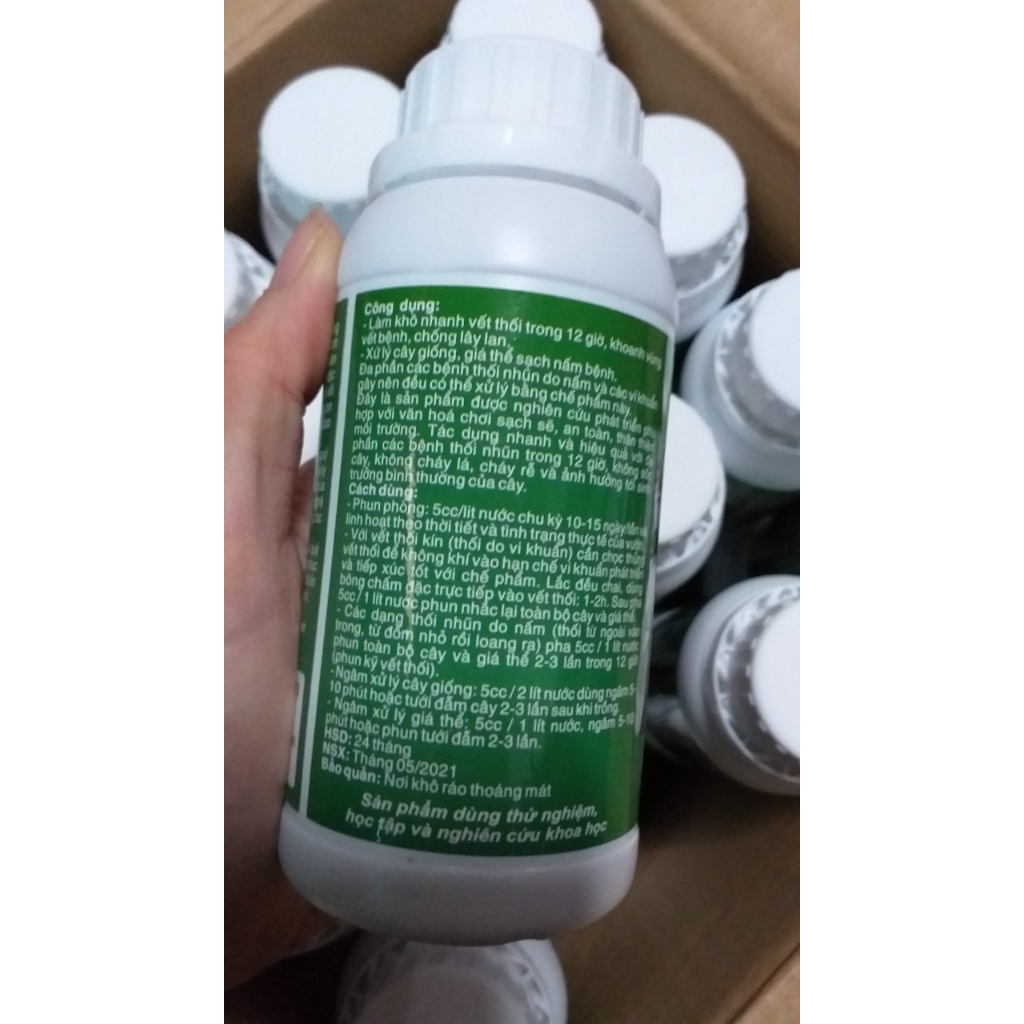Để đặc nguyên chất bôi hoặc phun trực tiếp lên vết thối sao cho toàn bộ vết thối tiếp xúc toàn bộ với chế phẩm tốt nhất. 1-2h sau pha chế phẩm theo tỉ lệ 30ml/1 lít nước, phun tưới lại toàn bộ cây và giá thể thật đẫm một lần nữa.