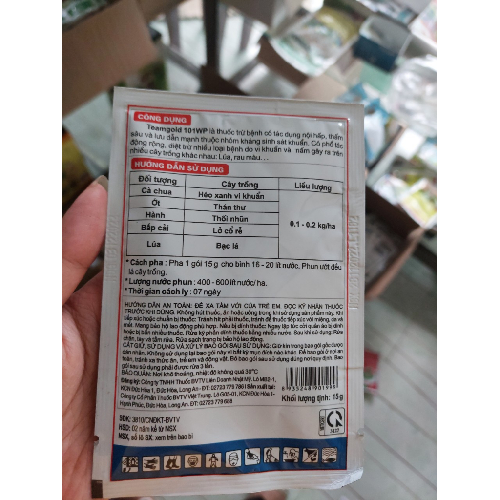 Chế phẩm TEAMGOLD 101WP – Trị thối nhũn, héo xanh vi khuẩn, lở cổ rễ, bạc lá cây trồng gói 15gr