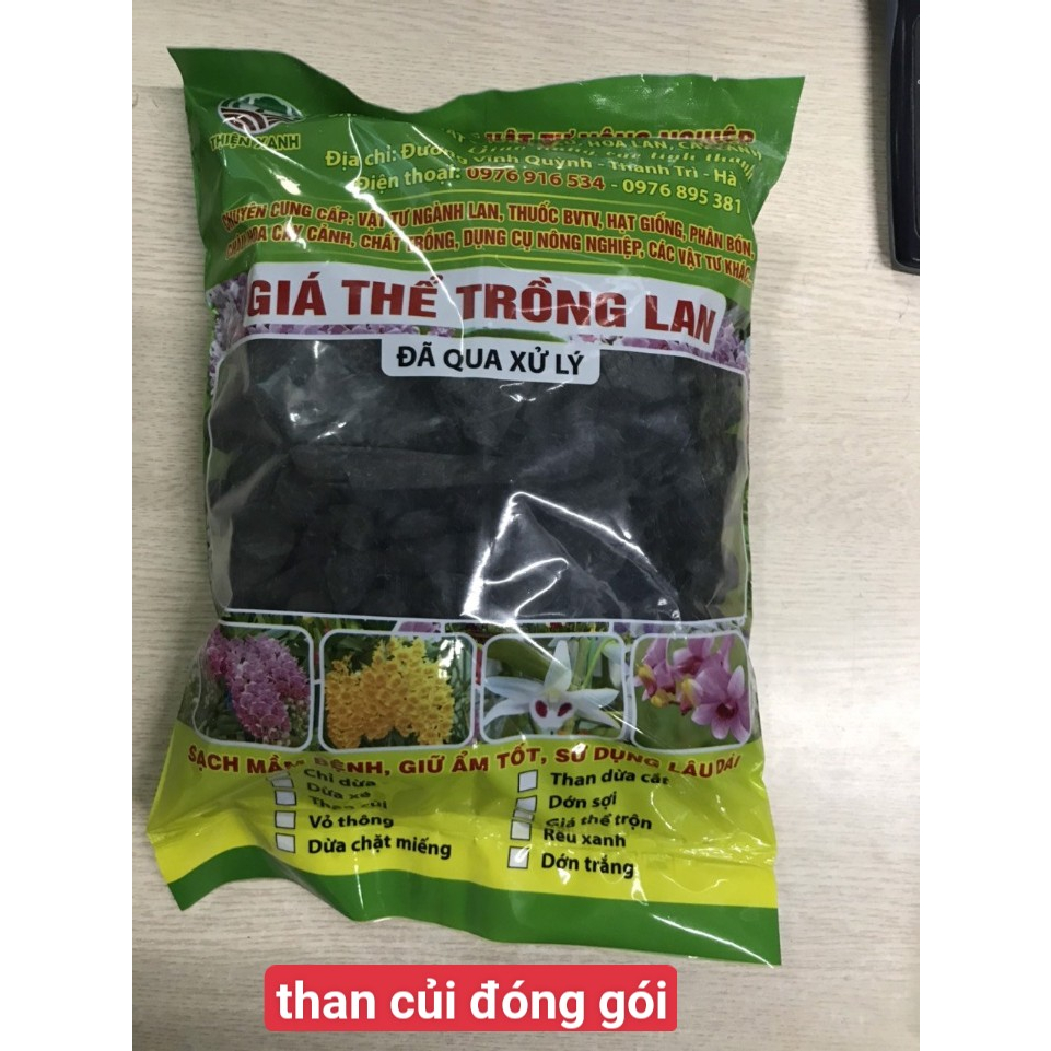 Giá thể than củi trồng lan được xử lý kĩ các mầm bệnh gây hại và được dùng để làm giá thể trồng hoa lan cực kì tốt. Than có đặc tính kháng khuẩn và khả năng giữ nước rất thông minh nên hạn chế việc ngập úng rễ hoa lan, giúp rễ phát triển khỏe mạnh.