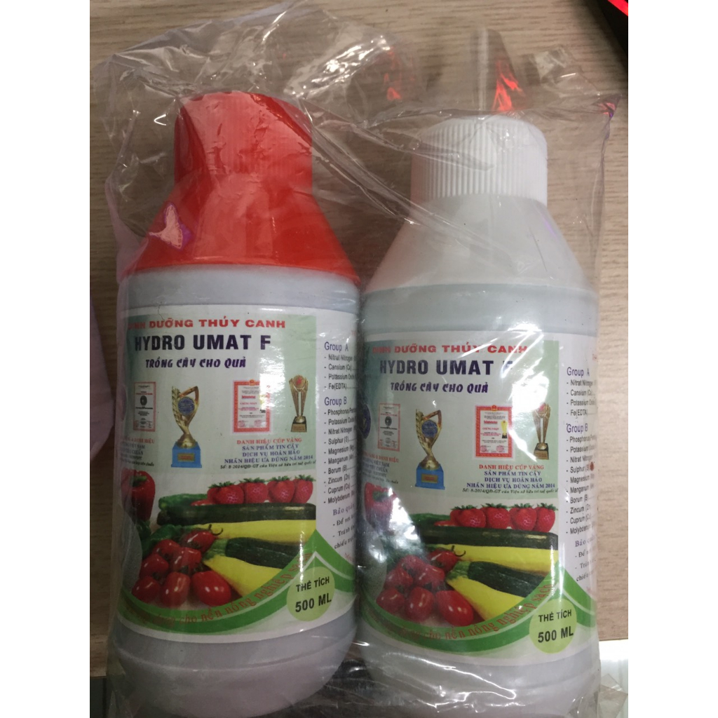 Phân bón Dung dịch dinh dưỡng thủy canh dành cho cây ăn quả Hydro Umat F, rau ăn lá Hydro Umat V – 1 cặp gồm 2 lọ 500ml