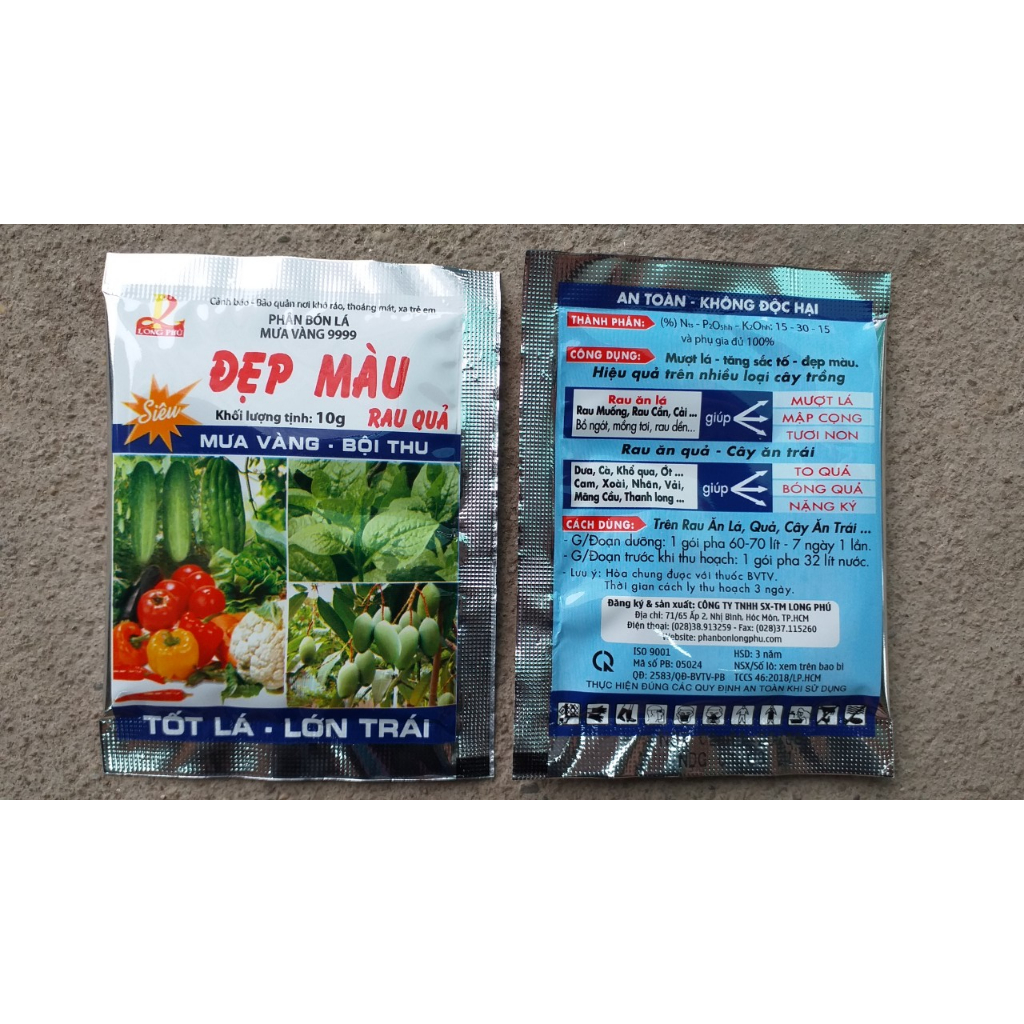 Phân bón lá Mưa vàng 9999 – Đẹp màu rau quả – Tốt lá, lớn trái gói 10gr
