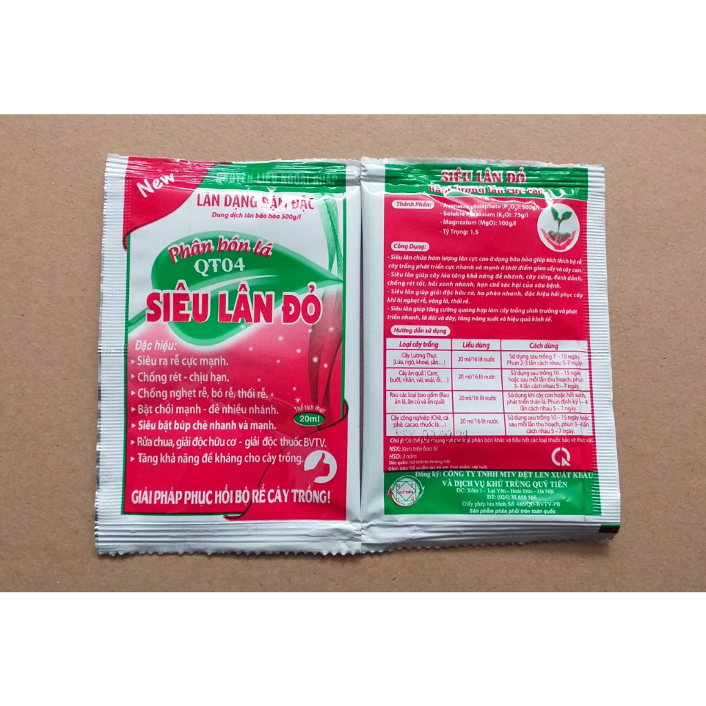 Phân bón lá – Siêu lân đỏ đậm đặc – cây khỏe, rễ mạnh gói 20ml – chính hãng