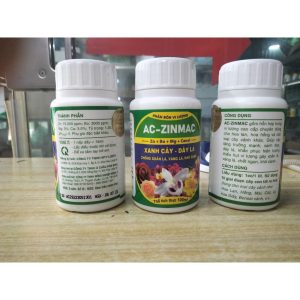 Ac-Zinmac gồm hỗn hợp trung vi lượng cao cấp chuyên dùng cho hoa lan, hoa hồng và cac loại cây cảnh khác. Giúp cây tăng trưởng mạnh, xanh đẹp, dày lá, khắc phục hiện tượng thiếu hụt vi lượng gây xoắn lá, vàng lá, chết ngọn, khô cành…