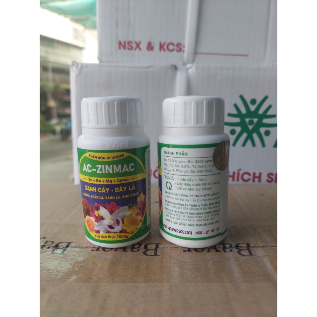 Phân Bón Vi Lượng AC-Zinmac lọ 100ml, bổ sung Zn+Bo+Mg+Canxi Giúp Xanh Cây – Dày Lá – Chống Xoắn lá, Vàng lá, Khô Cành