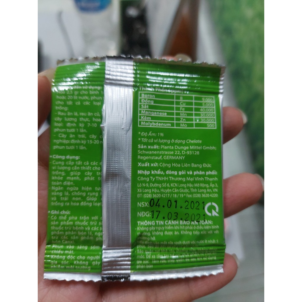 Phân bón vi lượng Micro Combi 2,5gr. Bổ sung vi lượng cho cây còi cọc, vàng lá, xoăn ngọn. Giúp xanh lá, nở ngọn